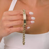 Elevate your everyday style with this 14K solid gold Cuban gourmet chain bracelet, featuring a sleek name plate and a secure modern box clasp. Designed for both men and women, it combines strength, elegance, and timeless appeal.