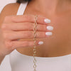 Elevate your wristwear with this 14K solid gold oval link bracelet, featuring a modern paperclip-style chain design. Its sleek, lightweight links create a refined minimalist look, while the bold statement design allows it to shine on its own or layered with other bracelets.